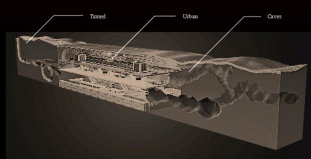 A final event in the fall of 2021 will combine all three types of subterranean environments. Underground illustration courtesy of Carnegie Mellon University, http://subt-explorer.org/.