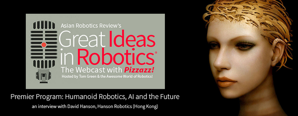 “Great Ideas in Robotics is a new breed of online talk show/webcast programming that actively goes on the hunt looking for these great new ideas, finds them and the brainiacs behind them, and then brings it all back to you.” See an interview with David Hanson of Hanson Robotics on Tom's first episode of Great Ideas in Robotics, here: