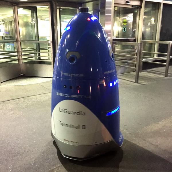One of several different robot models manufactured by Knightscope, the K5 has multiple sensors and can be driven by an operator or programmed to autonomously navigate a defined area while sending back information to security personnel. Each of its 4 cameras can read up to 300 license plates a minute and track vehicle dwell time as well as overall parking lot usage. K5 can also identify mobile devices and rogue routers within its operational area. Photos by Thomas Marsh. Broadridge is a global fintech leader with 40 offices worldwide.