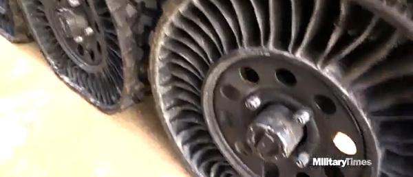 Of four prototypes now in contention, one is tracked and one uses "tweels" for locomotion, as the photos show.
