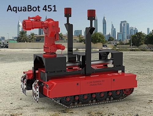 AquaBot 451 is a compact tracked fire-fighting chassis based on c-Link Systems’ Omni Panzer chassis