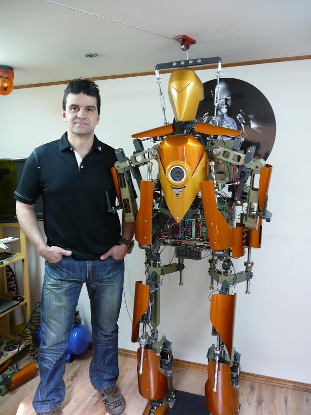 Pierre Bouchard of Quebec, Canada, has created electric-powered arm, wrist and grasping hand joint mechanics for his full scale Humanoid robot named J.A.R.R.V.I.S. See the video here!