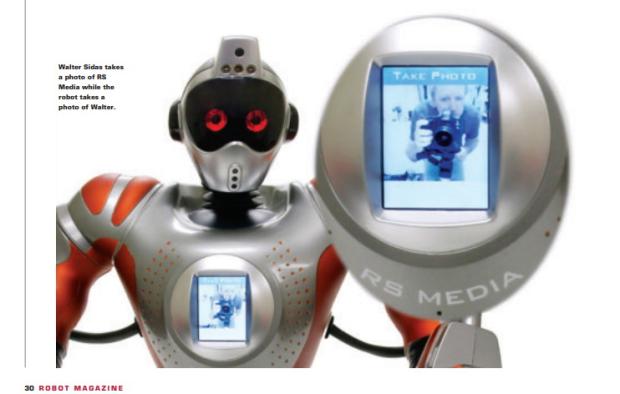 RoboSapien image courtesy of amazon[dot]com; FemiSapien courtesy of SingularityHub[dot]com; RS Media cover and image of house photographer Walter Sidas shooting RS Media while the robot images Walter, courtesy of Robot magazine, formerly published by Maplegate Media.