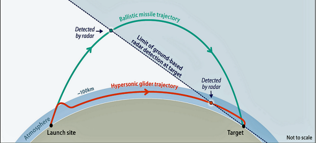 5. Schematic comparing ballistic missile trajectory with hypersonic atmospheric flight.